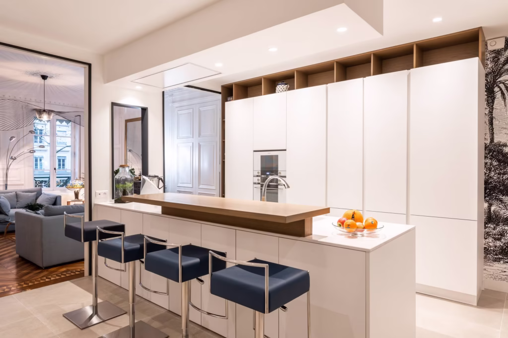 Ngoài ra, modular còn được áp dụng trong thiết kế nhà bếp, phòng tắm, và các khu vực chức năng khác. Tủ bếp modular có thể thay đổi kích thước, bố trí, hoặc thêm module lưu trữ, giúp nhà bếp vừa tiện nghi vừa thẩm mỹ.